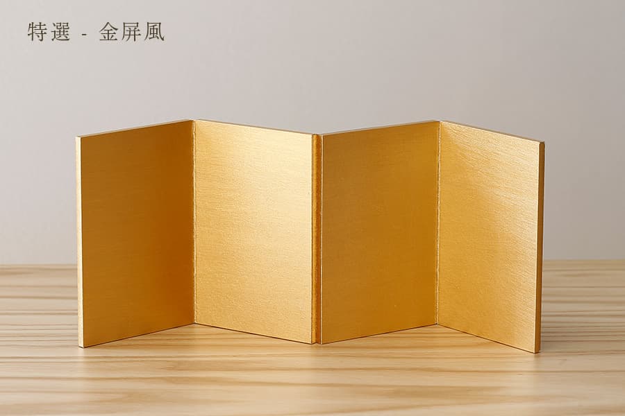 金屏風 無地:木の板に和紙を張り合わせ丁寧に仕上げました。 ひな祭りの歌にも登場する定番の金屏風は、お雛様をより華やかに、より煌びやかに演出します。 - お道具