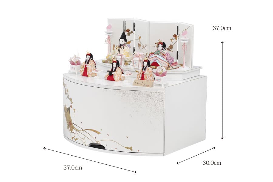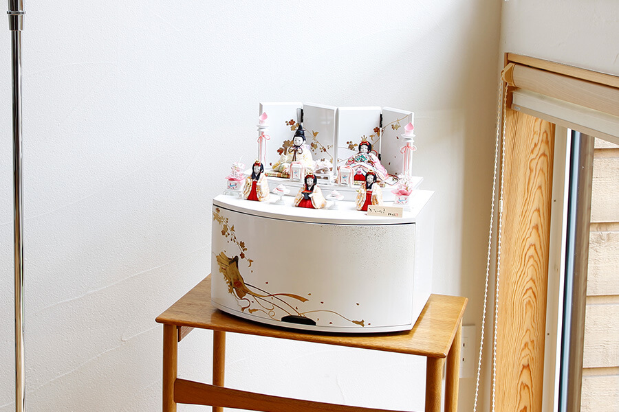 丸みを帯びた収納飾り台には金彩の草花模様があしらわれ、飾るだけで空間を明るく華やかに演出。