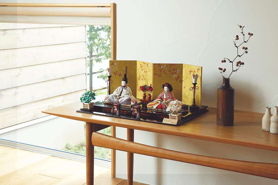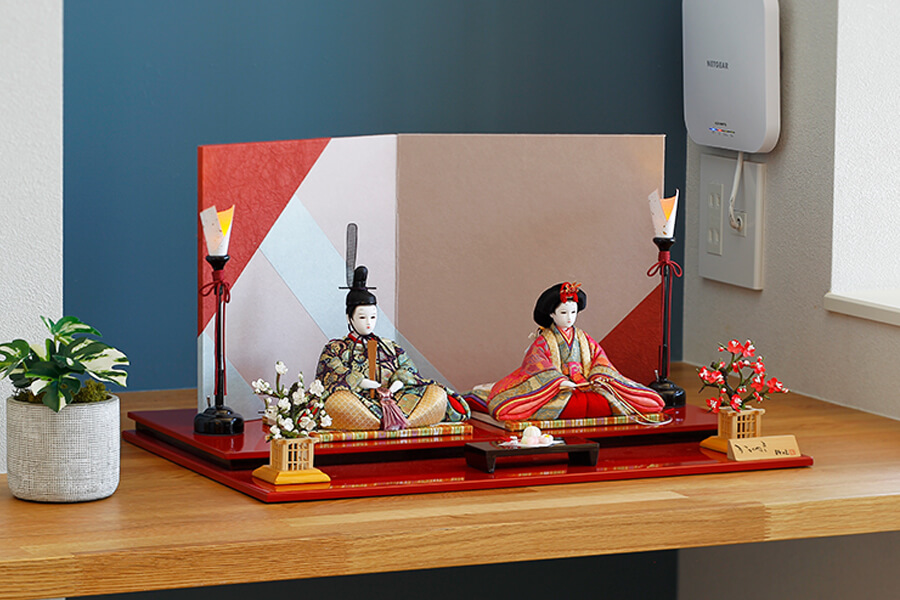 豪華絢爛な金屏風に映える、格式高い親王飾り。