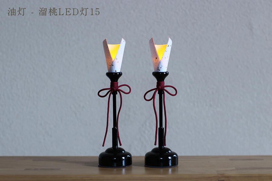 油灯 LED灯 溜桃:オレンジ色のあたたかい明かりが灯ります。ボタン電池式のコードレスタイプのため、飾る場所を選びません。