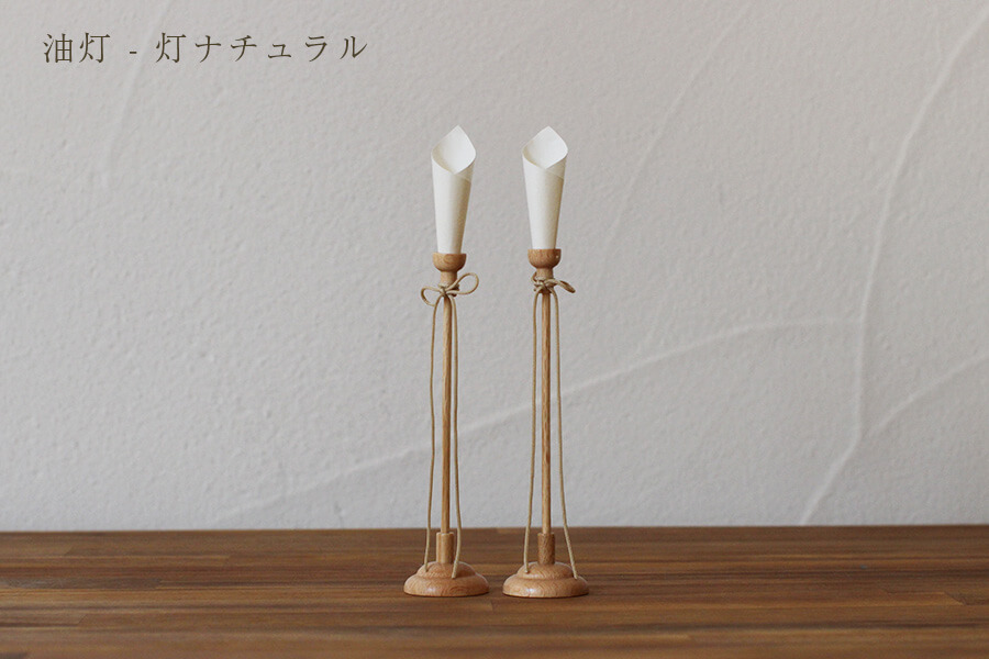 油灯 油灯 灯ナチュラル:飾り台に合わせた白木のデザイン。細身のシルエットがスタイリッシュな燭台です。