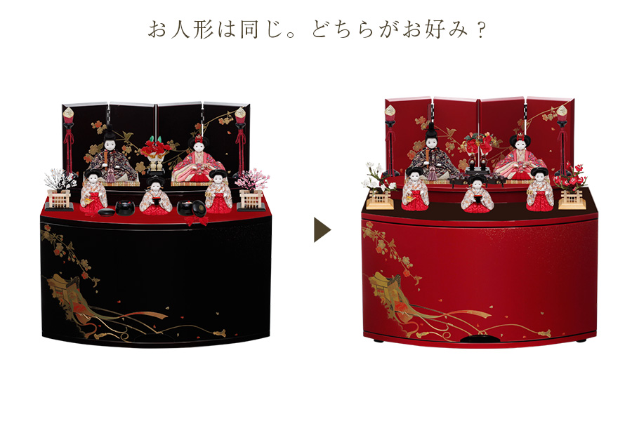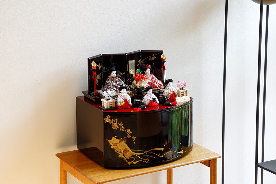 飾り台は収納箱としてもお使いいただける設計。お人形やお道具をすっきりと収められるため、出し入れも簡単で場所を取りません。華やかさと実用性を兼ね備え、末永くお楽しみいただけます。