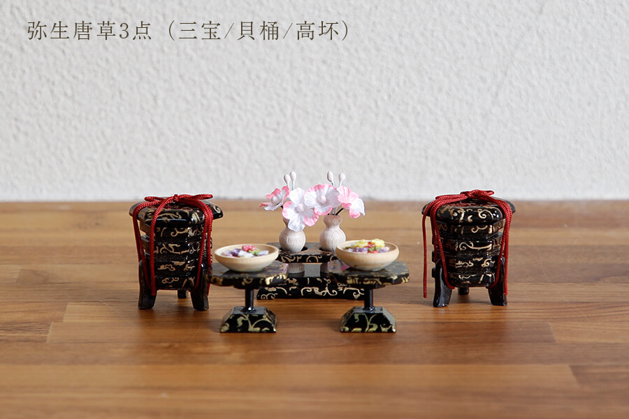 弥生唐草3点(三宝/菱餅/高坏):唐草文様は途切れることなく蔓を伸ばしていくことから、子孫繫栄や長寿を象徴するとても縁起の良い文様です。 - お花