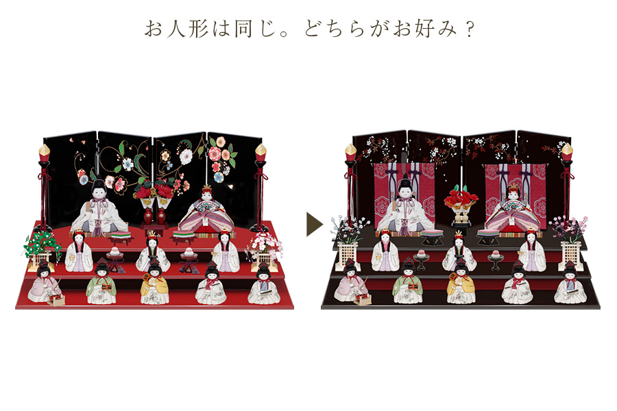 衣裳着人形・飾り台・お屏風・お道具については納品日より1年間無料で修理・交換させていただきます。