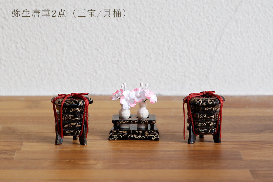弥生唐草2点(三宝/貝桶):唐草文様は途切れることなく蔓を伸ばしていくことから、子孫繫栄や長寿を象徴するとても縁起の良い文様です。 - お花
