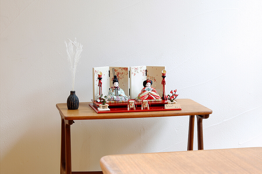 平二段飾り台 朱:魔よけの色として知られる朱色の飾り台。会津の漆器職人が丁寧に仕上げました。 - 屏風