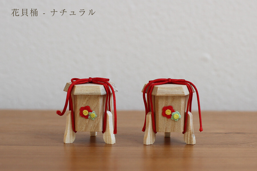 花貝桶 ナチュラル:ちりめんのお花がかわいいアクセントになった、白木のぬくもり溢れる貝桶です。 - お花