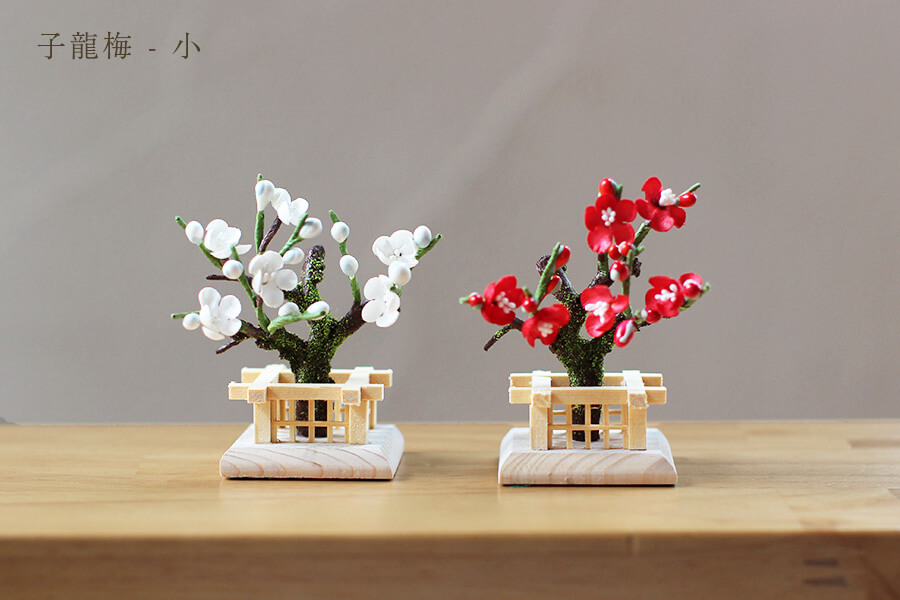 子龍梅(小):厳しい寒さの中、いち早く春の訪れを告げ良い香りを楽しませてくれる梅は「春告草」とも呼ばれる縁起の良い花です。赤は魔よけの色、白は高貴さを象徴しています。 古くから「歳寒(さいかん)の三友」のひとつに数えられ、日本ではおめでたいことの象徴です。(歳寒の三友…松竹梅) - 桐箱