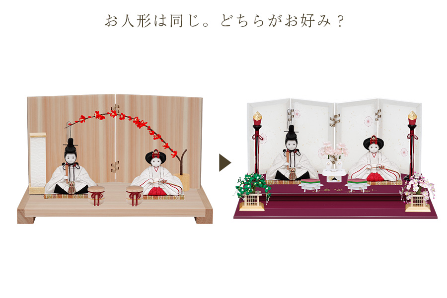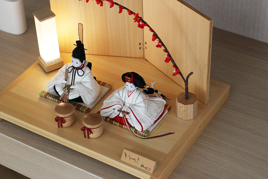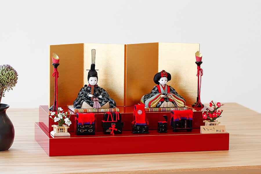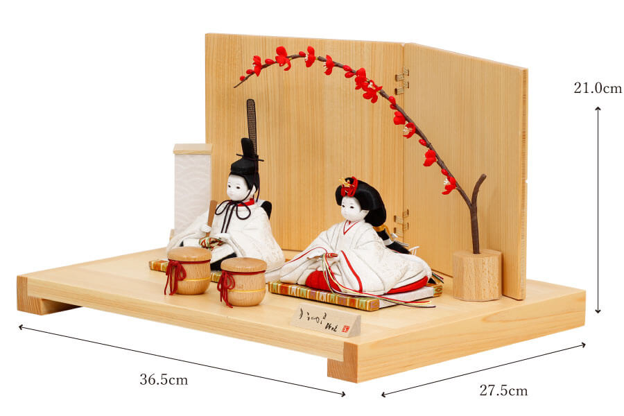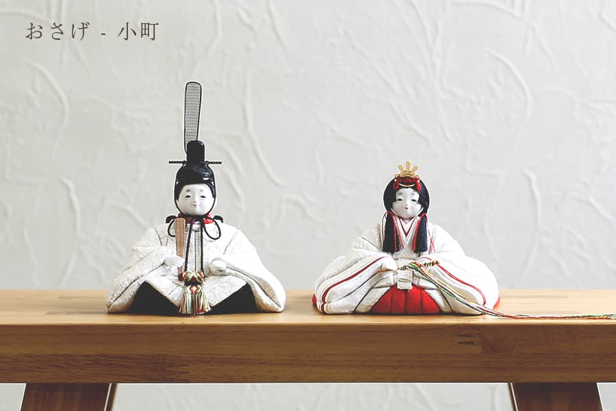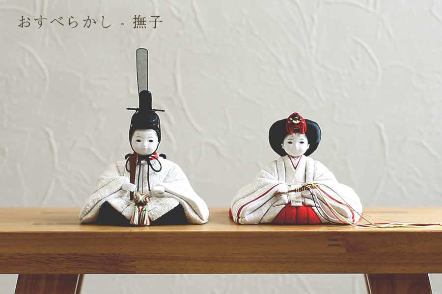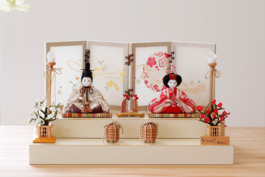 端正な表情の男雛と、優雅な女雛が揃い、シンプルながらも格調高い美しさを演出します。