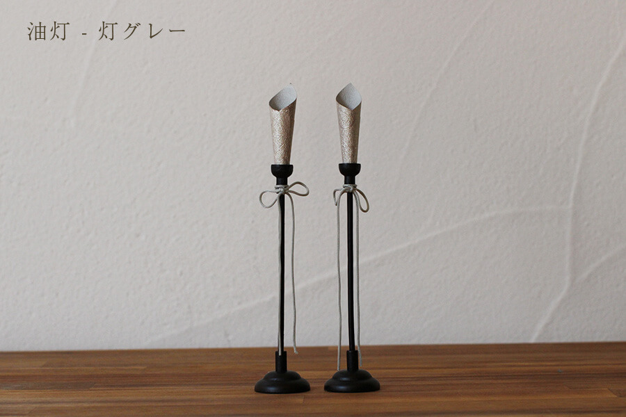 油灯 灯グレー:飾り台に合わせたマットな質感のツートンカラー。細身のシルエットがスタイリッシュな燭台です。
