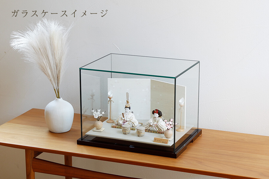 マットな質感の黒塗り台は、重厚感がありながらも上品な落ち着きを放ち、お人形の気品ある姿を一層際立たせます。屏風には、越前和紙ならではの柔らかな風合いが広がり、和の伝統美と現代的なセンスが絶妙に調和。
