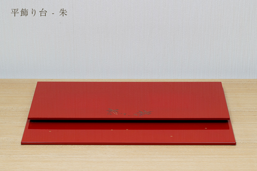 平二段飾り台:魔よけの色として知られる朱色の飾り台。会津の漆器職人が丁寧に仕上げました。