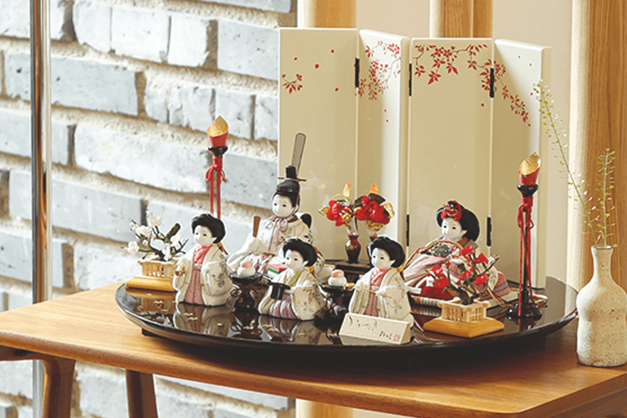 柔らかい印象の丸台飾り台や、お道具をたくさん飾ることができる三段の飾り台、ひととえの雅な世界がひろがるジオラマシリーズも奥行36~40cmで飾ることができます。