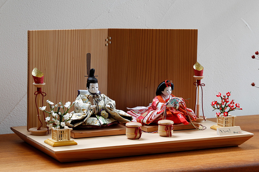 やわらかな雰囲気の天然木の飾り台は、木曽檜と天竜杉の2種類です。柾目(まさめ)の美しさがお雛様をより引き立てます。