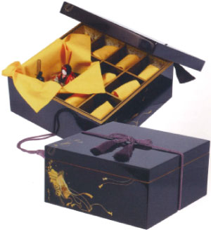 ひととえオリジナルの溜塗特製収納箱にグレードアップすることができます。艶やかな美しい光沢。優美で上品な溜色。