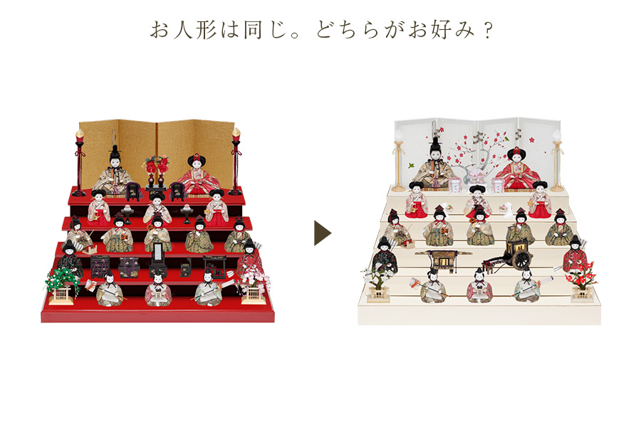 衣裳着人形・飾り台・お屏風・お道具については納品日より1年間無料で修理・交換させていただきます。