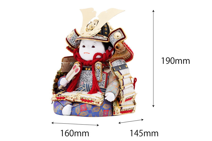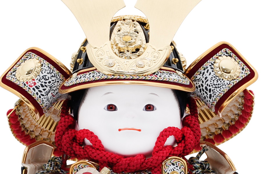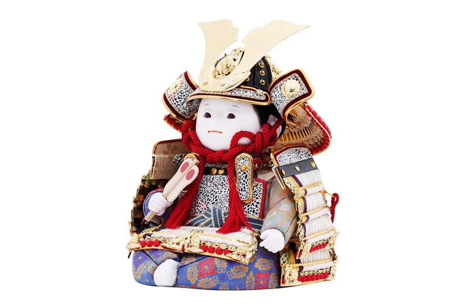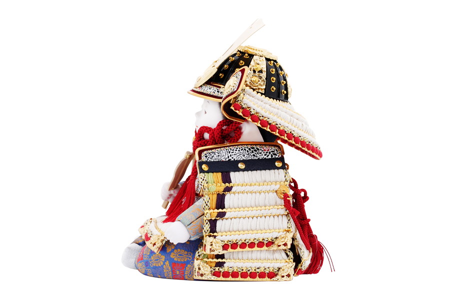 鮮やかな鎧兜を身に着けた愛らしいお顔の木目込み座り大将。