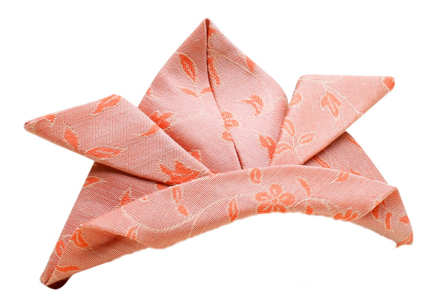 一つ一つ丁寧に折りあげられた布製の折兜をお付けしました。