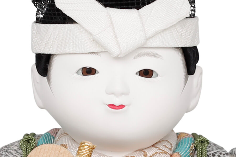 お顔の素材は石膏です。仕上げは胡粉(ハマグリの貝殻を細かく砕いたもの)で仕上げています。目はガラスの入れ目を採用しています。目切りといって、ひとつひとつ職人の手で切り出し制作しています。お人形のボディの素材は、桐塑(とうそ)という桐の粉を正麩糊で固めたものです。昔ながらの伝統的な素材、技術を用いて制作しています。ウレタンは一切使用しておりませんので、自然の温かみのある仕上がりになります。