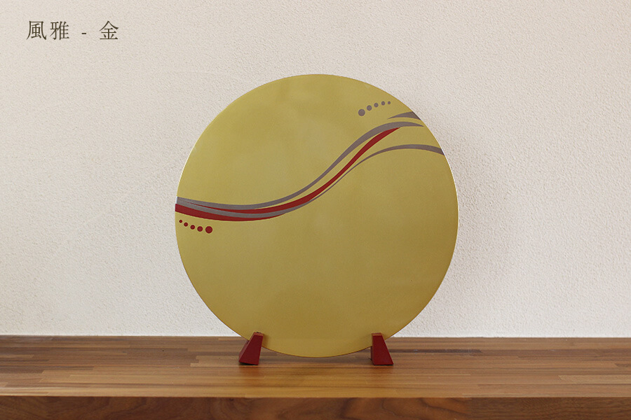 風雅 金:木の板に艶やかな塗りを施したイエローゴールドの屏風。会津の漆器職人が丁寧に仕上げました。 - お道具