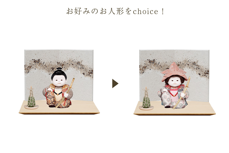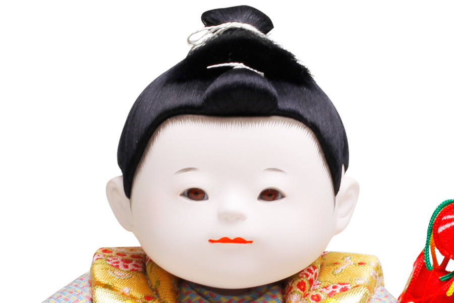 お顔の素材は石膏です。仕上げは胡粉(蛤の貝殻を細かく砕いたもの)で仕上げています。 ボディは桐塑(とうそ)という桐の粉を正麩糊で固めたものです。自然の温かみのある仕上がりになります。