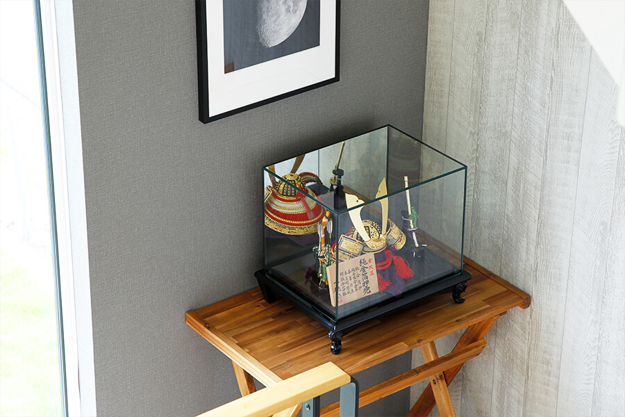 インテリアに合うスタイリッシュなデザイン、格調高い兜やお人形にふさわしい重厚感と高級感、兜やお人形の美しいお色を損なわない透明感――。これらを追及した完全オリジナルのガラスケースです。宝石店のショーケースのようなフレームケースは厚さ5mmのガラスを採用。背面に鏡が付いているタイプのご用意もございます。 - 下台