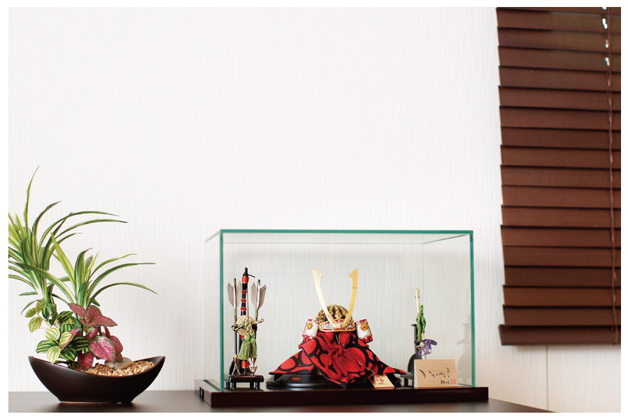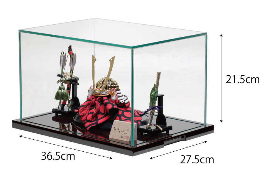 インテリアに合うスタイリッシュなデザイン、格調高い兜やお人形にふさわしい重厚感と高級感、兜やお人形の美しいお色を損なわない透明感――。これらを追及した完全オリジナルのガラスケースです。宝石店のショーケースのようなフレームケースは厚さ5mmのガラスを採用しました。 - 下台
