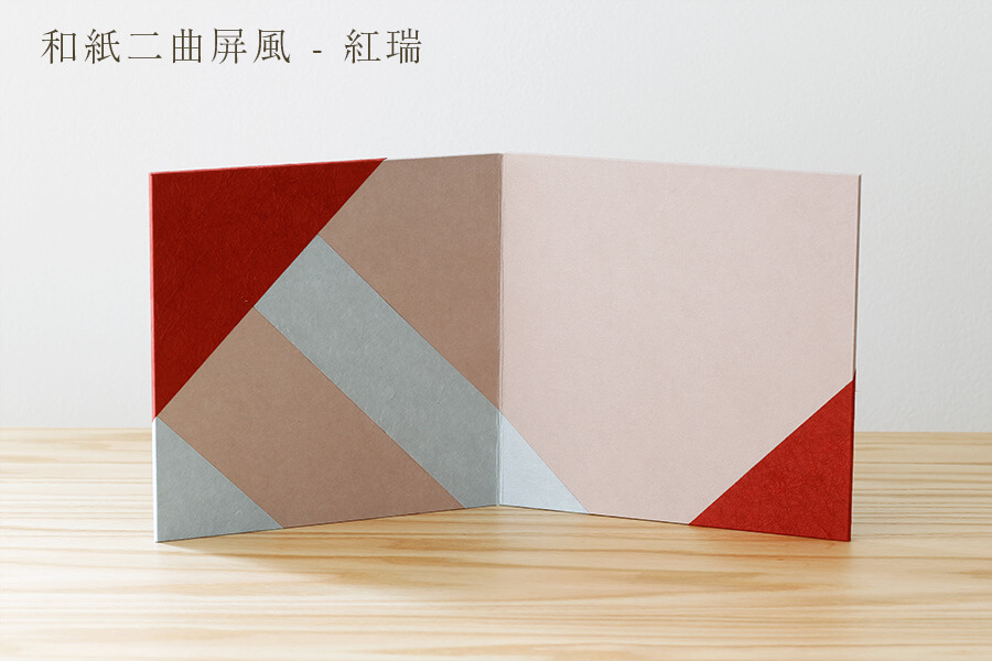 和紙屏風 紅瑞:様々な和紙を絶妙なバランスの幾何学柄に配したモダンな屏風です。デザイナーが心を込めてデザインした逸品はオリジナリティが特徴です。 - お道具