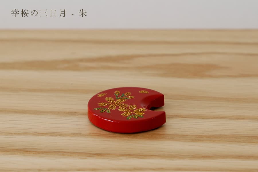 幸桜の三日月 朱:樹脂で形成された三日月に会津塗と蒔絵師の手描き蒔絵により仕上げました。ワンポイントの前飾りとしておすすめ。 - お花