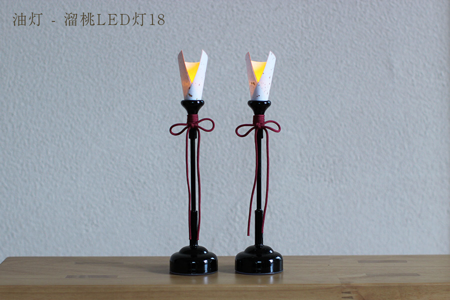 油灯 LED溜桃:オレンジ色のあたたかい明かりが灯ります。ボタン電池式のコードレスタイプのため、飾る場所を選びません。