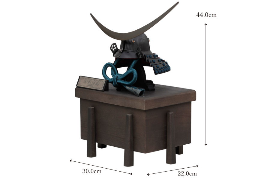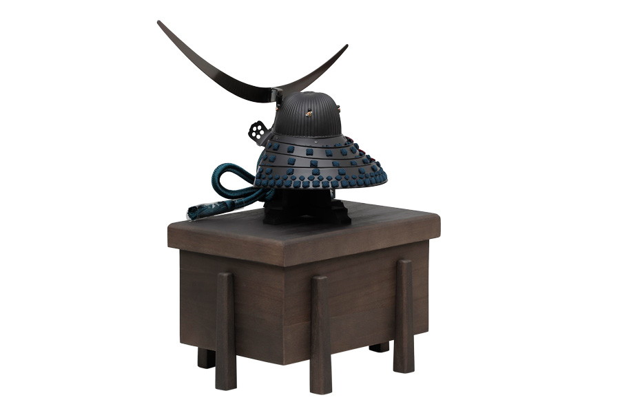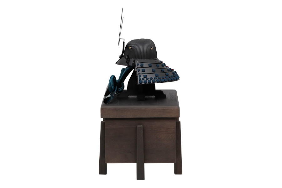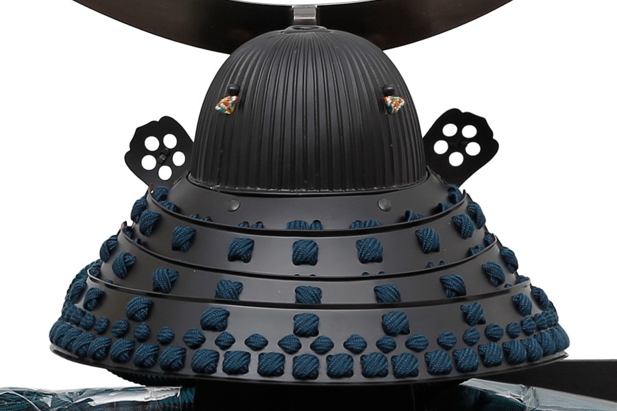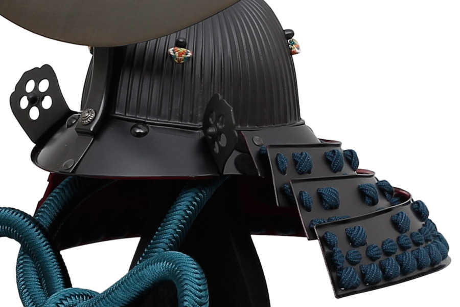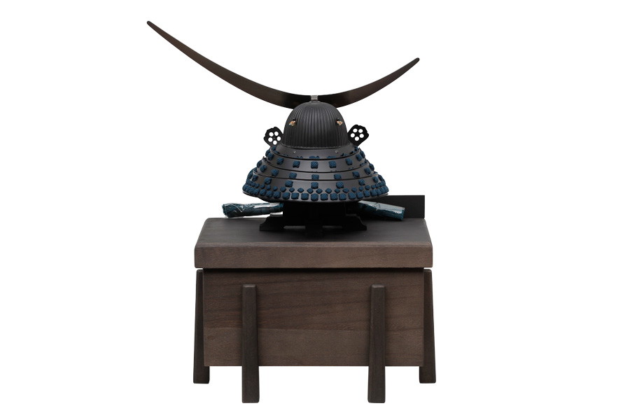近年、ナチュラルなやさしい雰囲気の兜飾りが増える中、シックで重厚感のある佇まいが魅力。忍びの鉄紺色はとても上品で、正絹(シルク100%)ならではの艶やかさです。