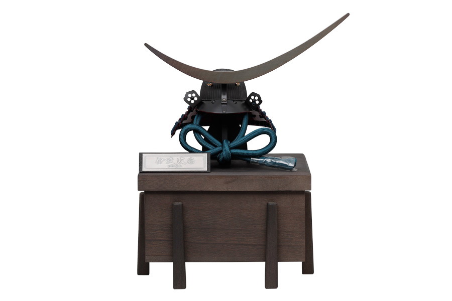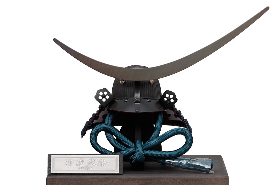兜の後部は、素懸(すがけ)といわれる威し方を採用し、実際に戦いに行く甲冑を模しています。兜の中は赤い裏地を使用。これは、武将たちが自分の顔を血色よく見せるために好んだと云われています。