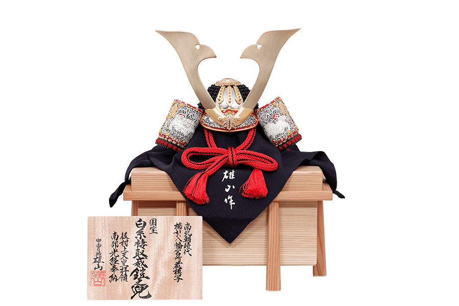 雄山作「国宝模写・白糸褄取之兜」は職人による匠の技を遺憾なく発揮した逸品です。