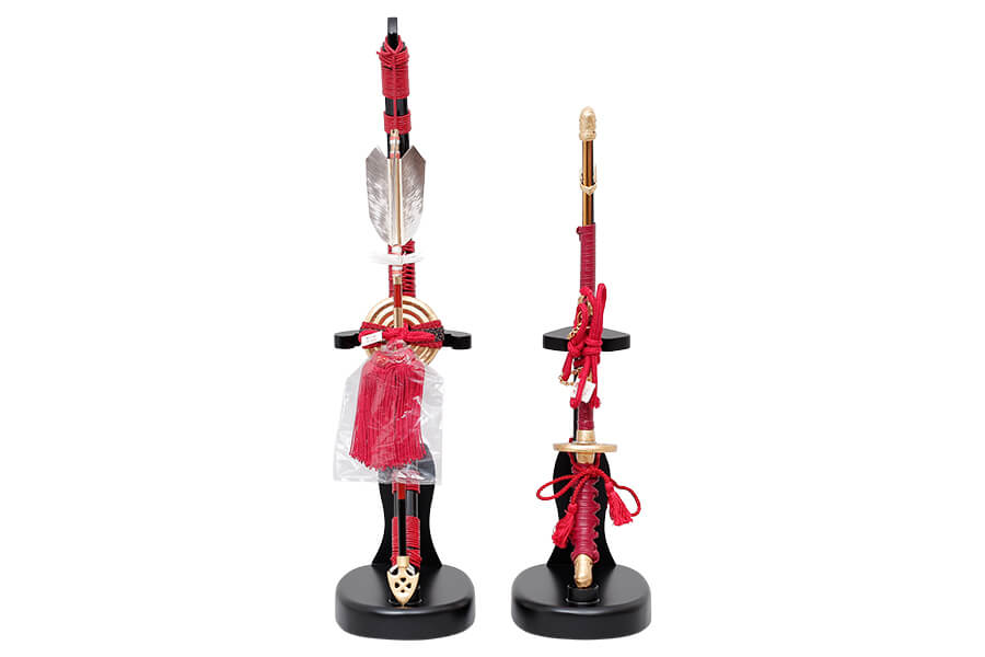 - (弓)横幅9.5×奥行13.5×高さ41.0(cm)/(太刀)横幅9.5×奥行13.5×高さ35.0(cm)
