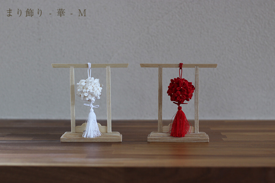 薬玉 華 M:紅白の手づくりの薬玉を飾り、より華やかに。薬玉は無病息災を願う縁起物です。 - お花