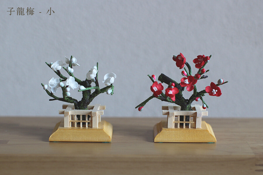 子龍梅 小:厳しい寒さの中、いち早く春の訪れを告げ良い香りを楽しませてくれる梅は「春告草」とも呼ばれる縁起の良い花です。赤は魔よけの色、白は高貴さを象徴しています。 古くから「歳寒(さいかん)の三友」のひとつに数えられ、日本ではおめでたいことの象徴です。(歳寒の三友…松竹梅) - 桐箱
