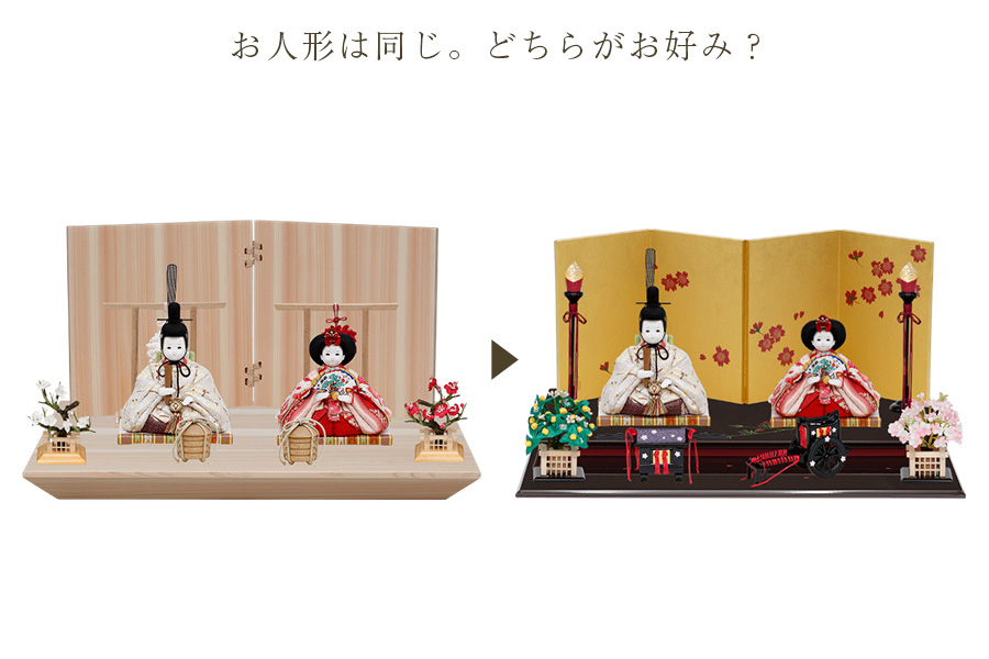 衣裳着人形・飾り台・お屏風・お道具については納品日より1年間無料で修理・交換させていただきます。