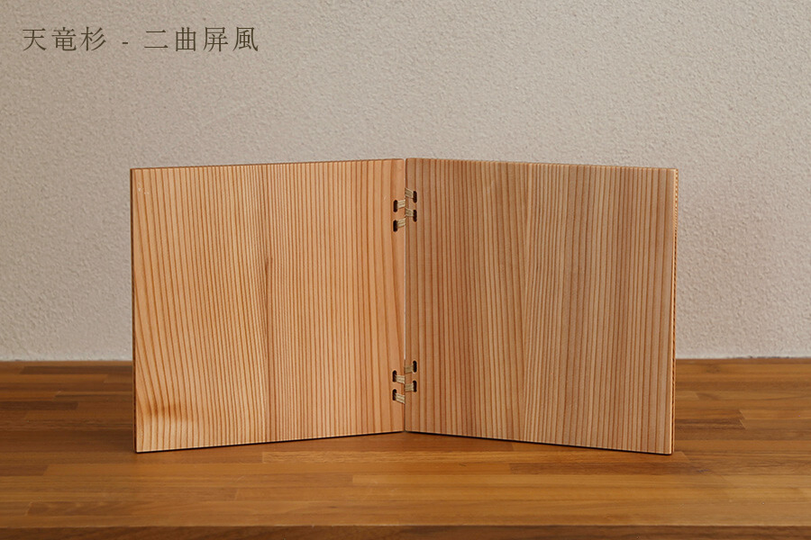 天竜杉 二曲:飾り台に合わせた柾目の天竜杉屏風。ゆったりとした二曲の屏風で気品ある佇まいに。 - お道具