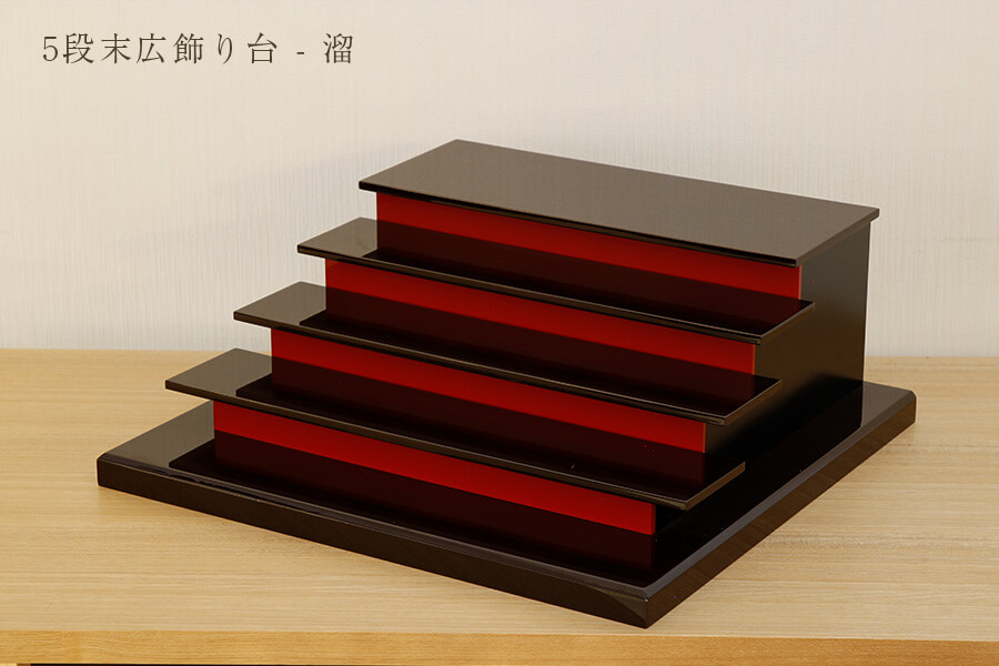 五段末広飾り台 溜:品の良いチョコレートブラウン色の飾り台。会津の漆器職人が丁寧に仕上げました。 - 屏風