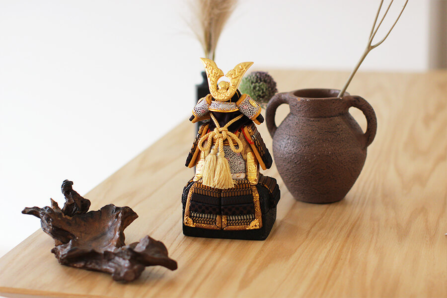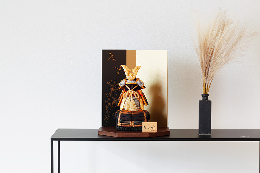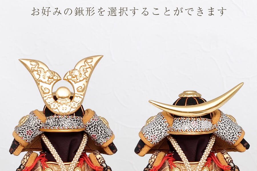 鍬形は純金箔押し。V型、三日月、お好みの鍬形をセレクトできます。