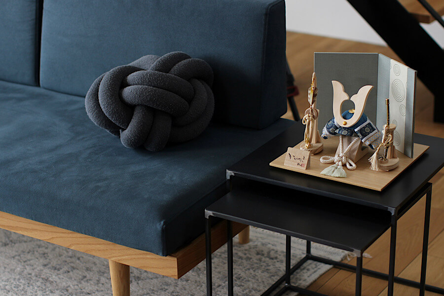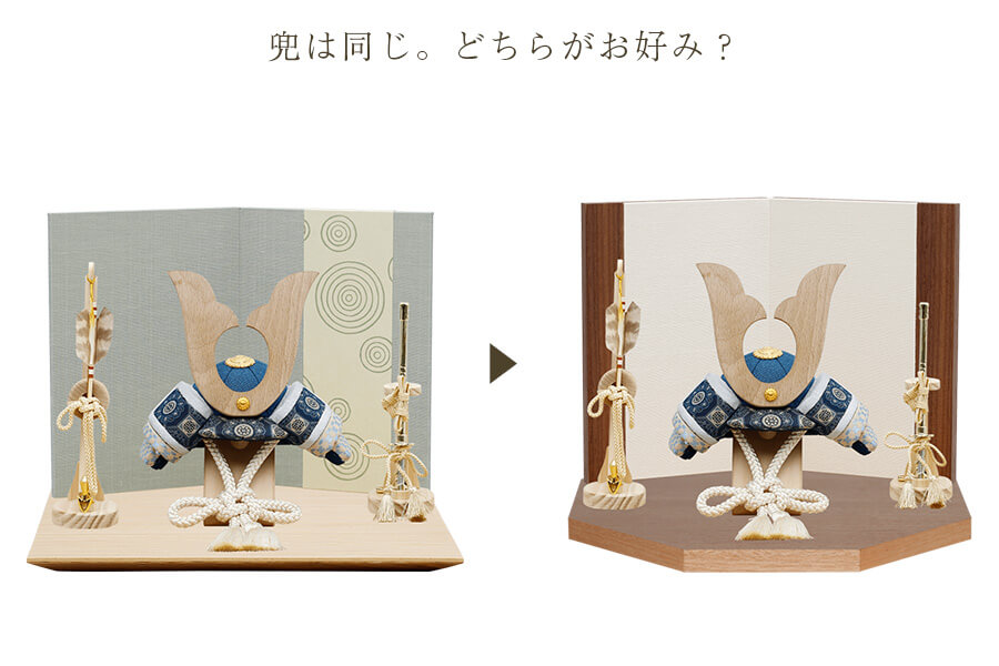 江戸木目込み人形の伝統的な技と素材にこだわった、スタイリッシュな兜飾りです。