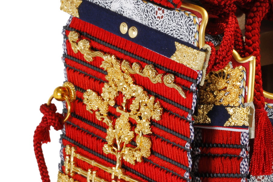 櫛引八幡宮(青森県)所蔵の国宝菊金物赤糸威大鎧を5分の1の大きさで模写しました。