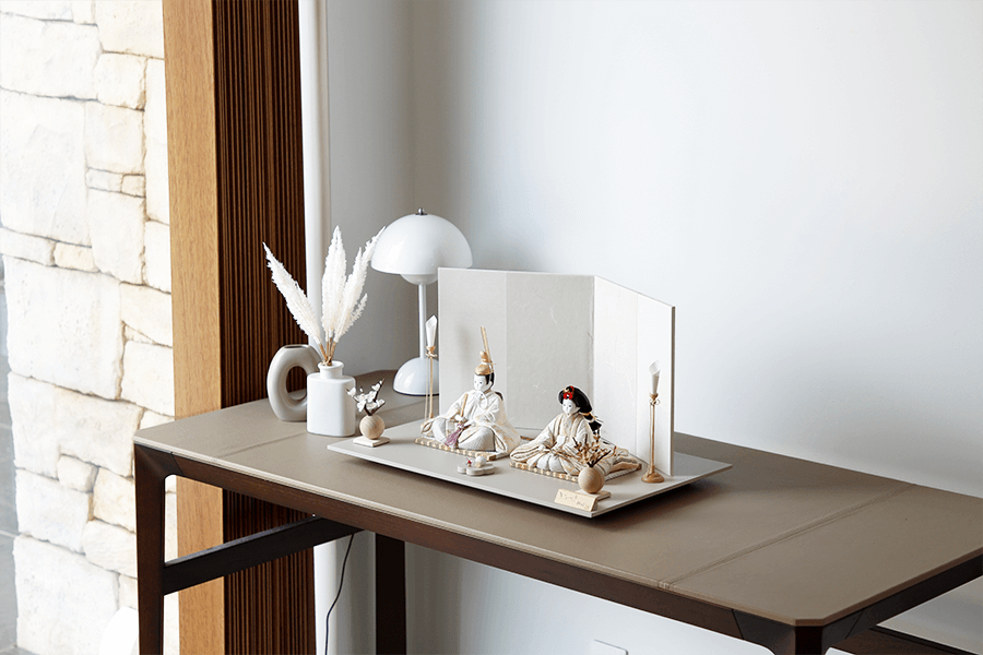 穏やかで高級感あふれる雰囲気を演出する本品は、大切なお子さまの健やかな成長を祈るにふさわしい雛飾りです。