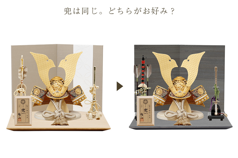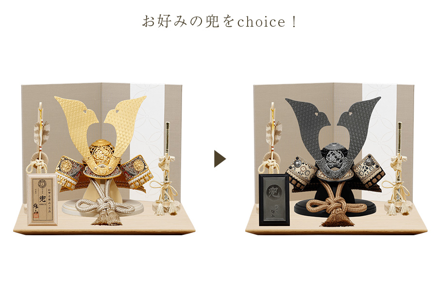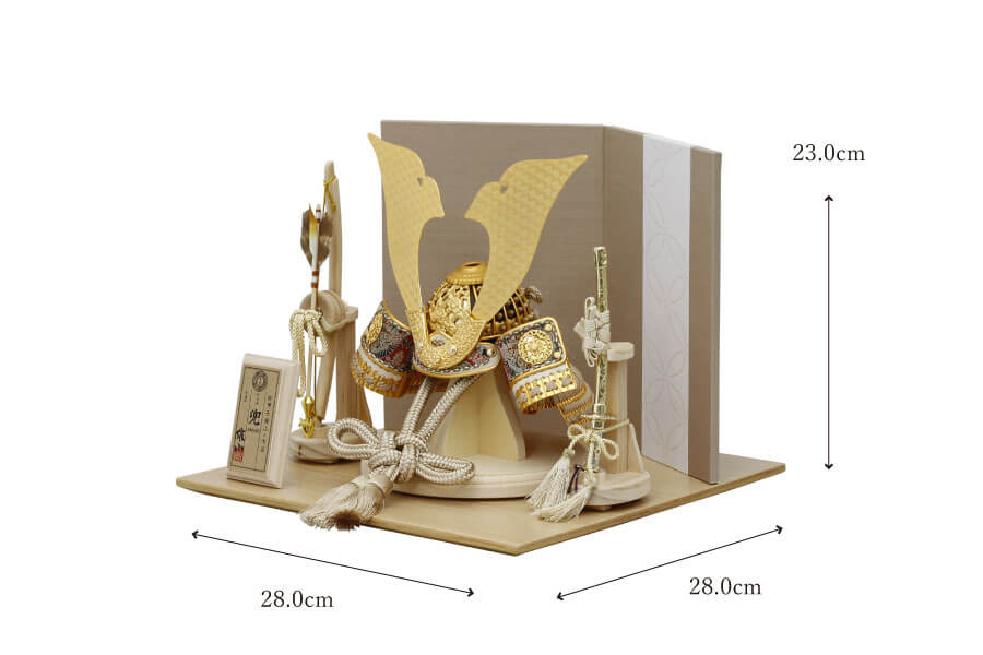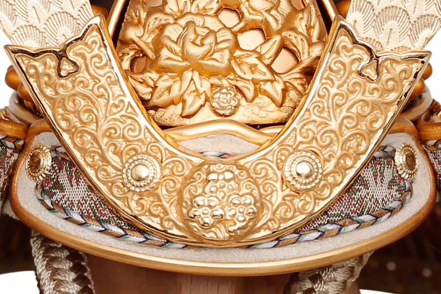 毎年絶大な人気を誇る、金小札薄茶中白威之兜『大地』。ナチュラルな色味で和室・洋室を問わずお飾りいただけます。