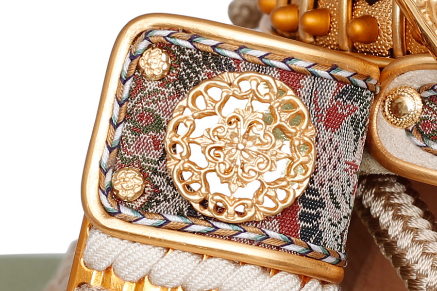 吹き返し、眉庇には、龍村美術織物を使用し、重厚感を演出。さらに、立体的な正倉院文様の金具を吹き返しに配し、格調の高さを醸し出しています。