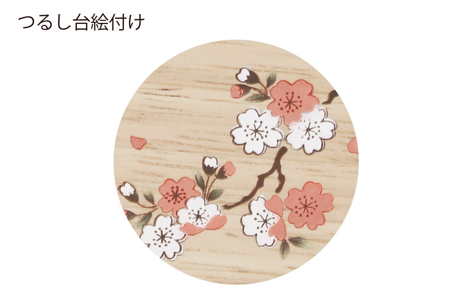 つるし台は近年人気の木肌を活かしたナチュラル仕上げ。下台には可愛らしい桜の蒔絵を施しました。