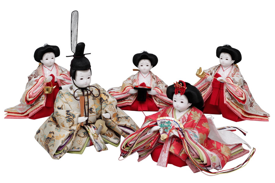 衣裳着雛人形は、女雛と男雛を飾る「親王飾り」と、そこに三人官女を加えた「五人飾り」をご用意しています。
