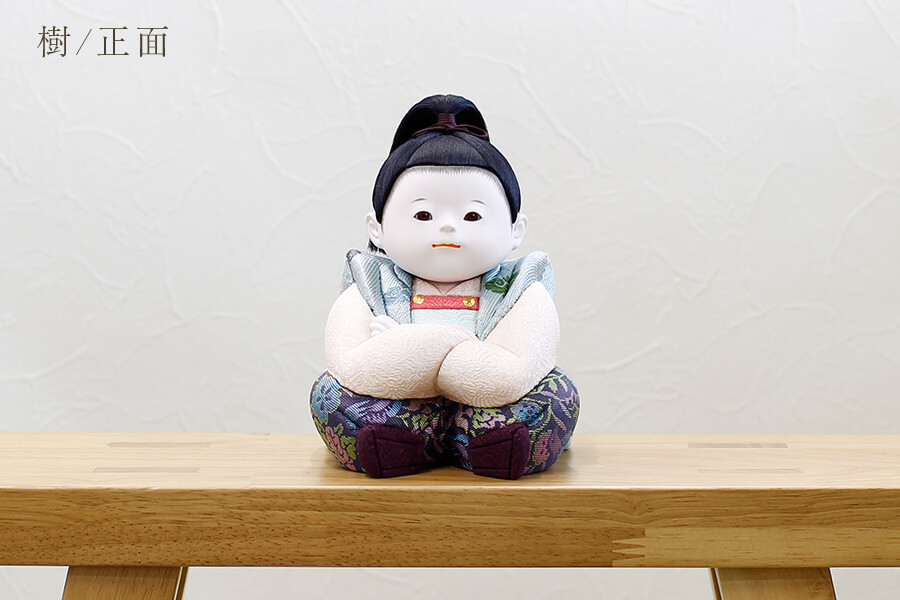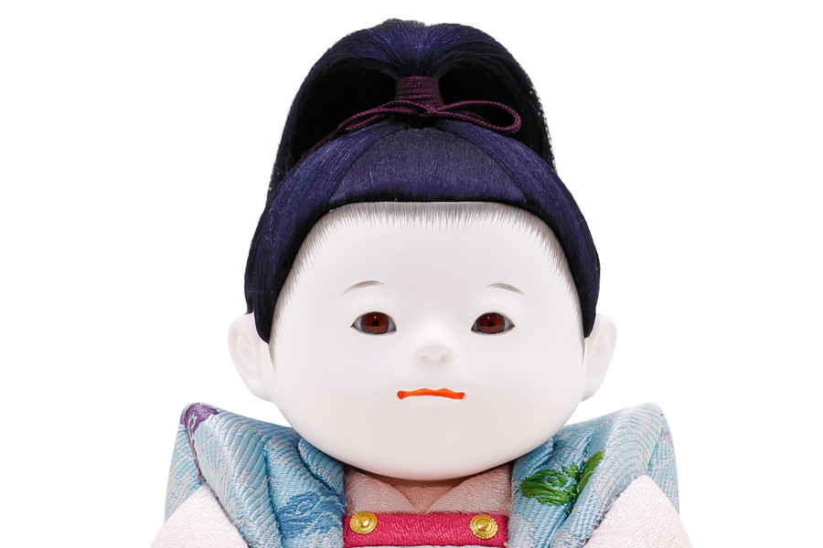 お顔の素材は石膏です。仕上げは胡粉(蛤の貝殻を細かく砕いたもの)で仕上げています。 ボディは桐塑(とうそ)という桐の粉を正麩糊で固めたものです。自然の温かみのある仕上がりになります。