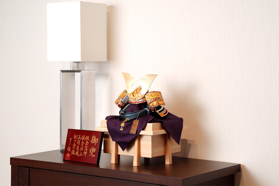 非常にコンパクトな兜飾りですが、高級感と存在感が感じられます。インテリアとしても通年お飾りいただけます。