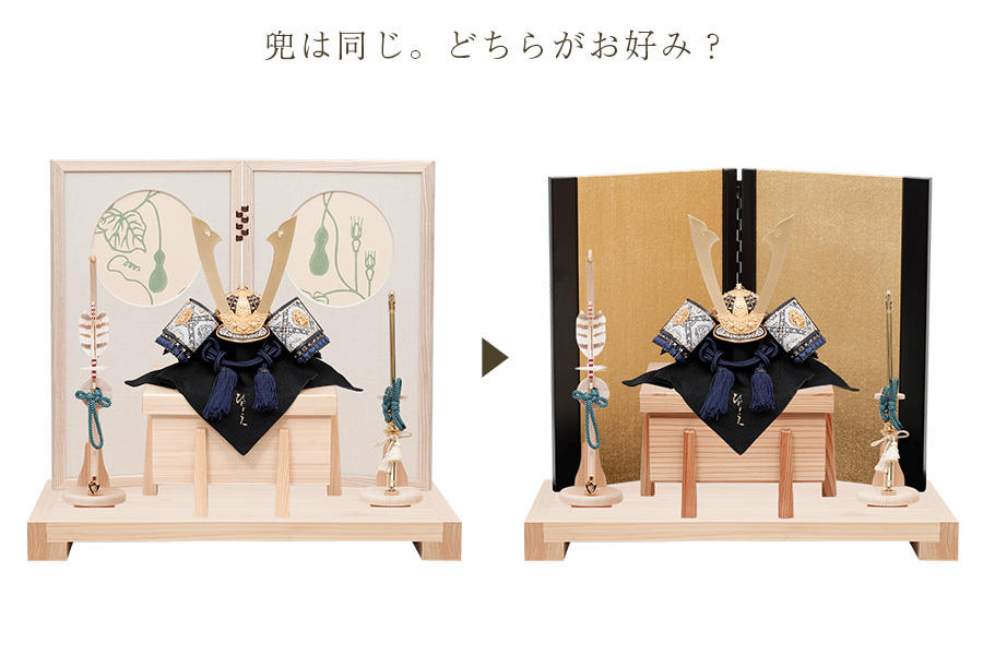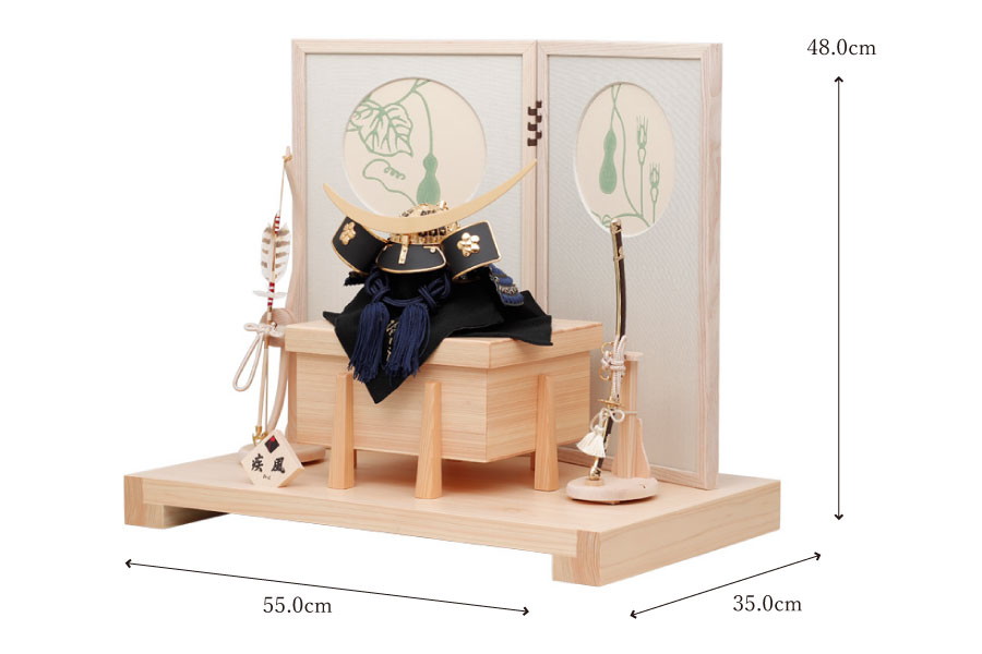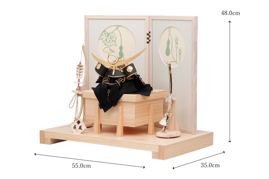 木曽檜 :飾り台にあわせた木曽檜のお櫃。兜を収納することができます。 - お屏風